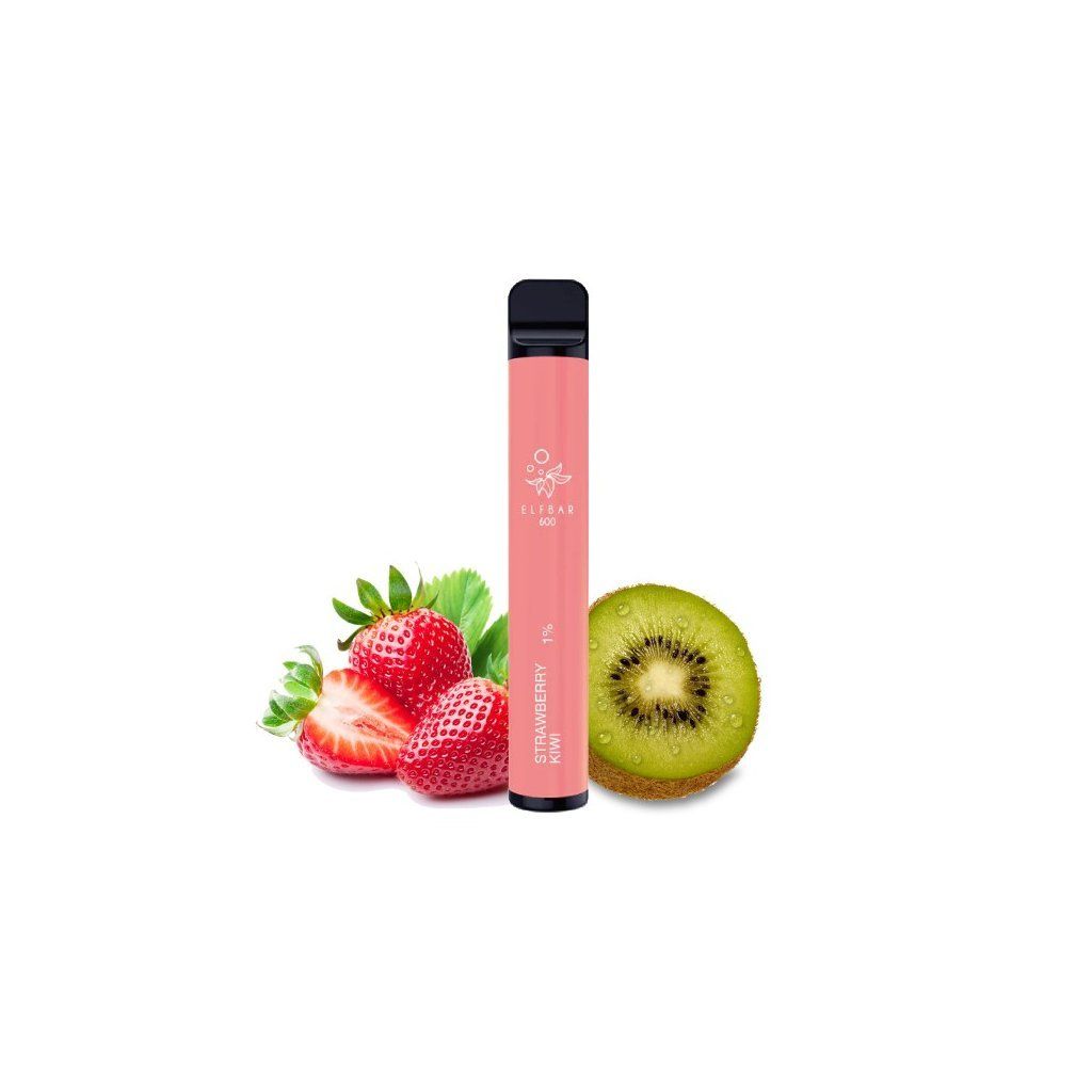 Okamžitě připraveno, žádné starosti. ELF BAR STRAWBERRY KIWI (jahoda a kiwi) – rozbal a vapuj. Až 600 potahů. Příchuť: jahoda.