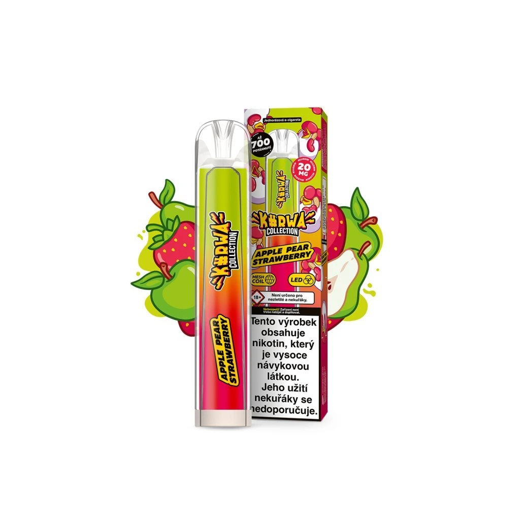 Diskrétní síla bez kouře. KURWA COLLECTION APPLE PEAR STRAWBERRY (jablko, hruška, jahoda) ti dá čistý kick a výraznou chuť. Příchuť: jahoda, jablko.