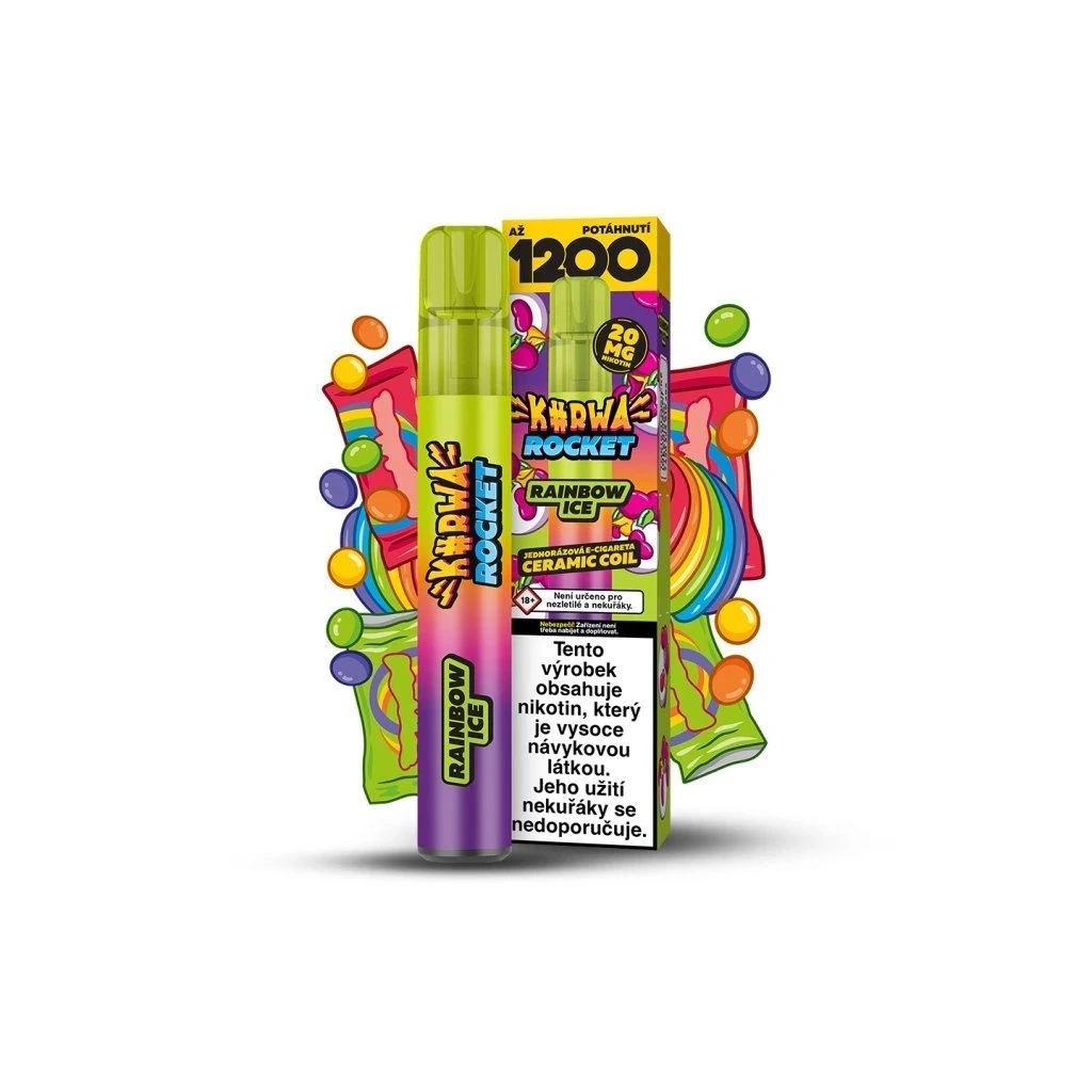 Diskrétní síla bez kouře. KURWA ROCKET RAINBOW ICE ti dá čistý kick a výraznou chuť. Příchuť: ice.