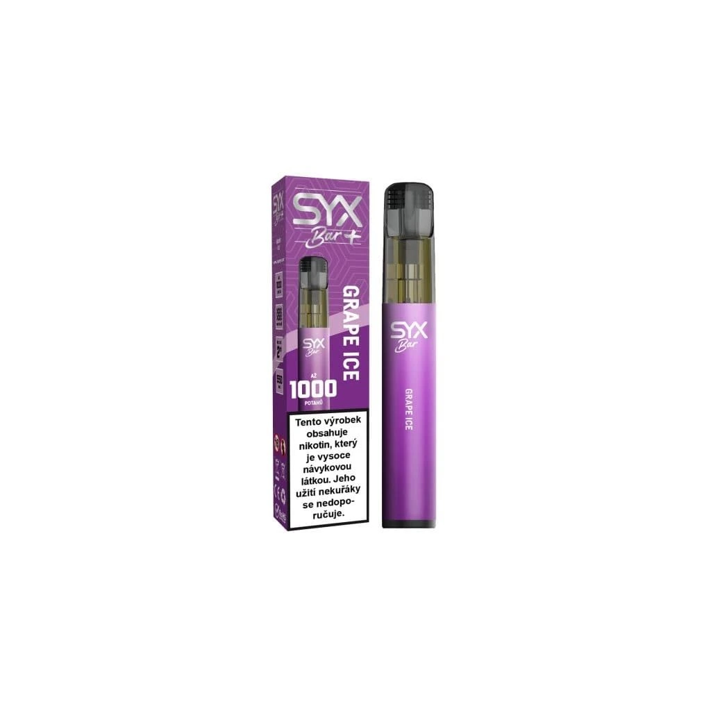 Okamžitě připraveno, žádné starosti. SYX BAR GRAPE ICE 16,5 mg – rozbal a vapuj. Až 1000 potahů. Příchuť: hroznové víno, ice.