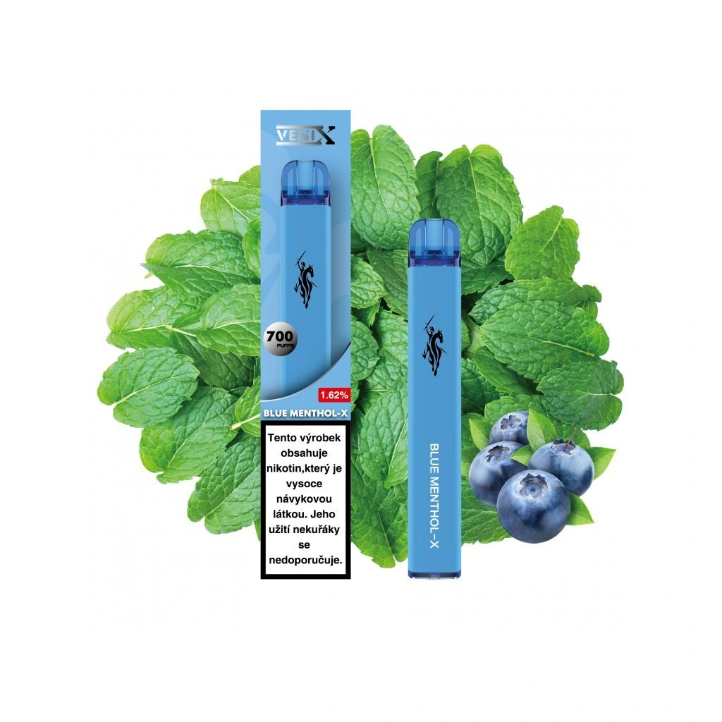 Okamžitě připraveno, žádné starosti. VENIX BLUE MENTHOL-X (modrý menthol) – rozbal a vapuj. Až 700 potahů. Příchuť: ledová máta.