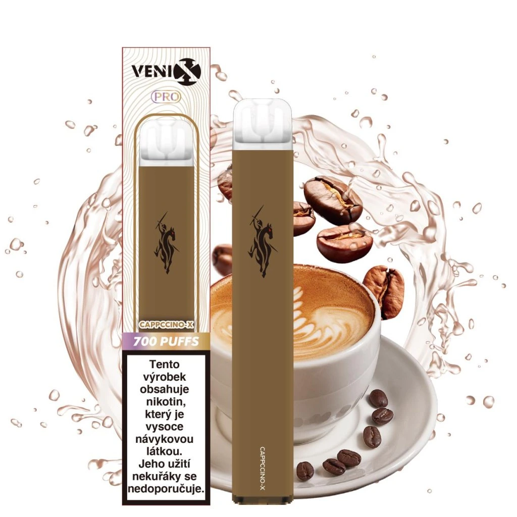 Okamžitě připraveno, žádné starosti. VENIX PRO CAPPUCINO-X – rozbal a vapuj. Až 700 potahů. Příchuť: VENIX PRO CAPPUCINO-X.