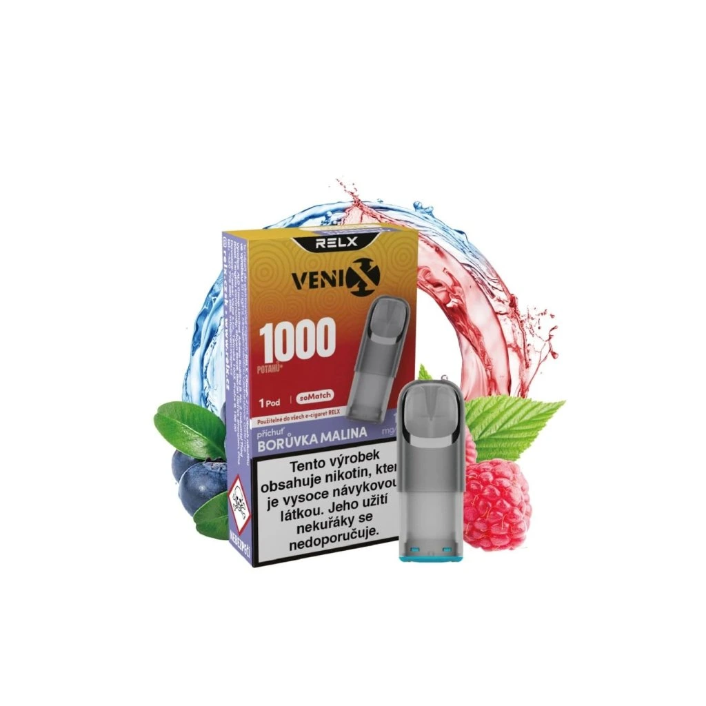 VENIX-RELX SOMATCH POD BLUEBERRY RASPBERRY je jednorázová e-cigareta pro maximální pohodu: žádné nastavování, žádné dolévání, žádné starosti. Prostě ji vezmeš do ruky a jdeš.