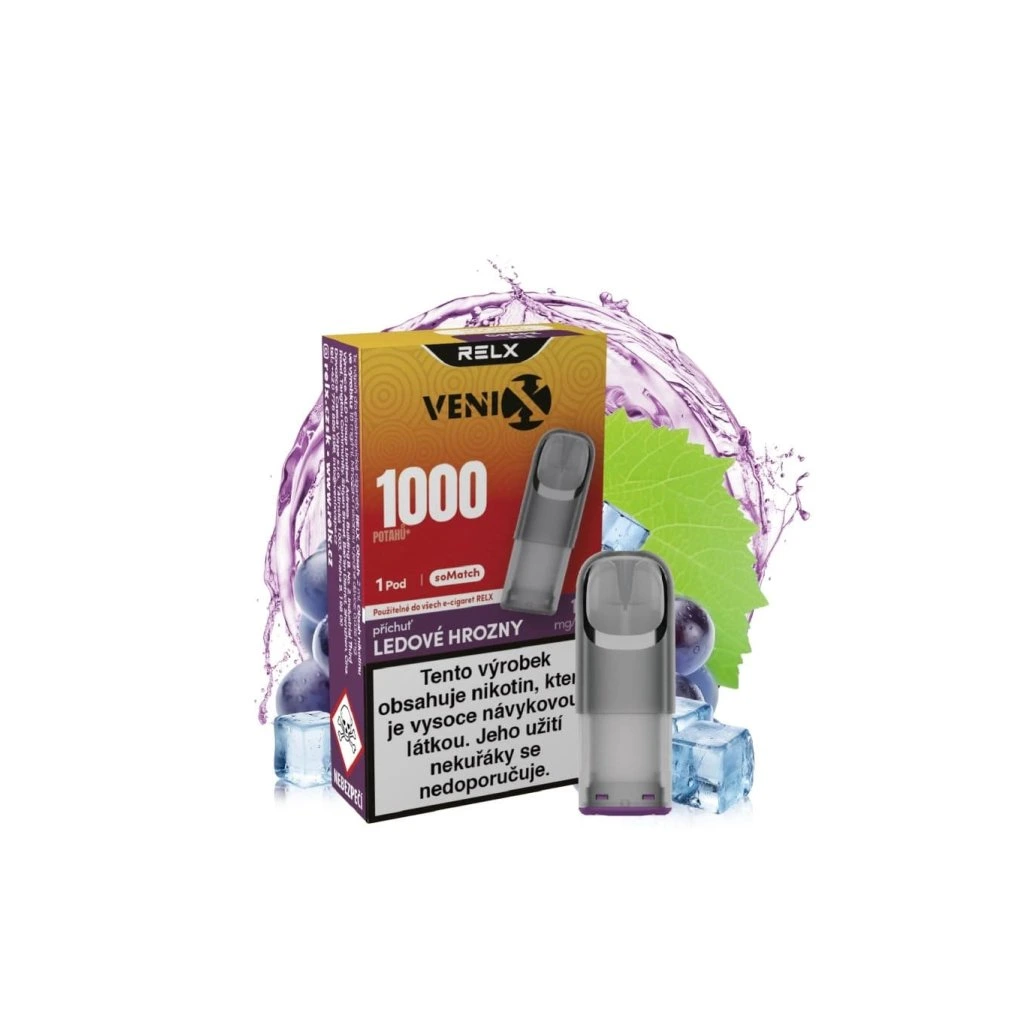Okamžitě připraveno, žádné starosti. VENIX-RELX SOMATCH POD GRAPE ICE – rozbal a vapuj. Příchuť: hroznové víno, ice.