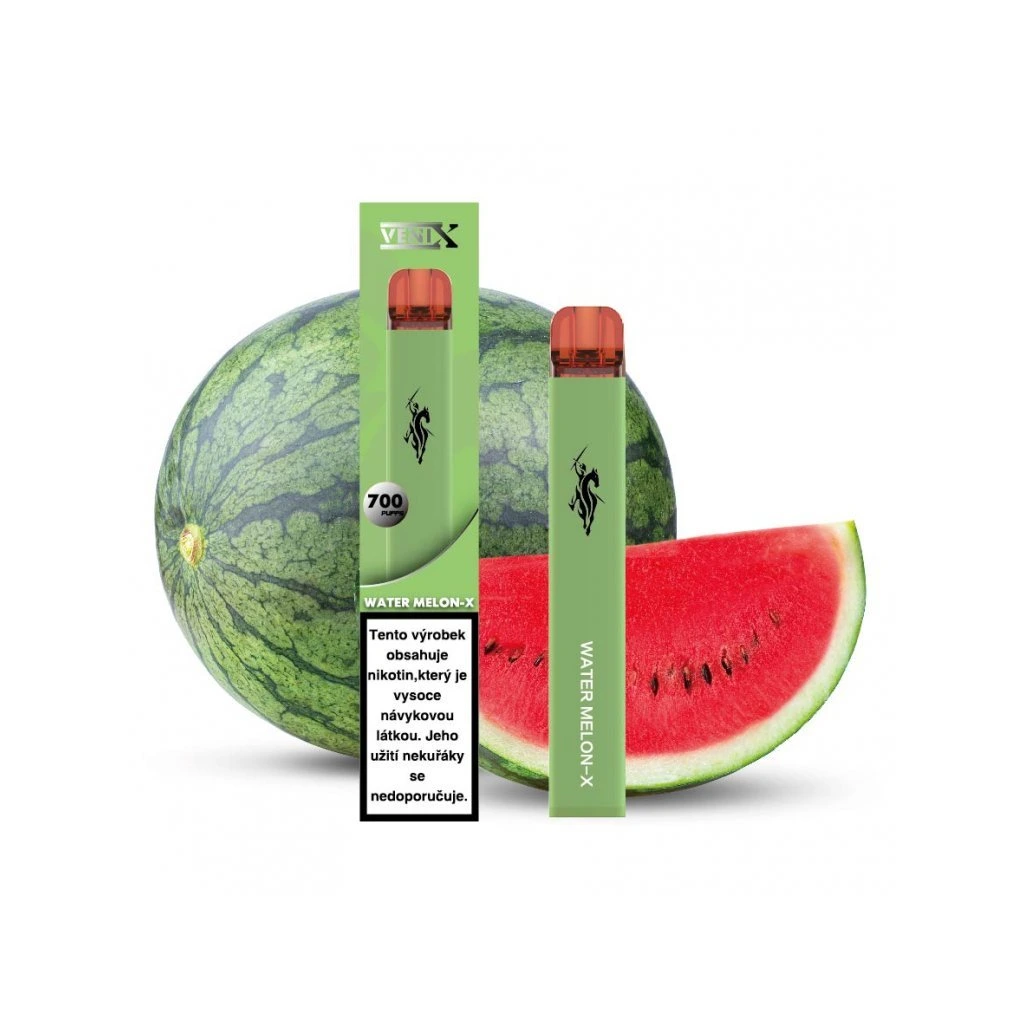 Okamžitě připraveno, žádné starosti. VENIX WATER MELON-X (meloun) – rozbal a vapuj. Až 700 potahů. Příchuť: vodní meloun.